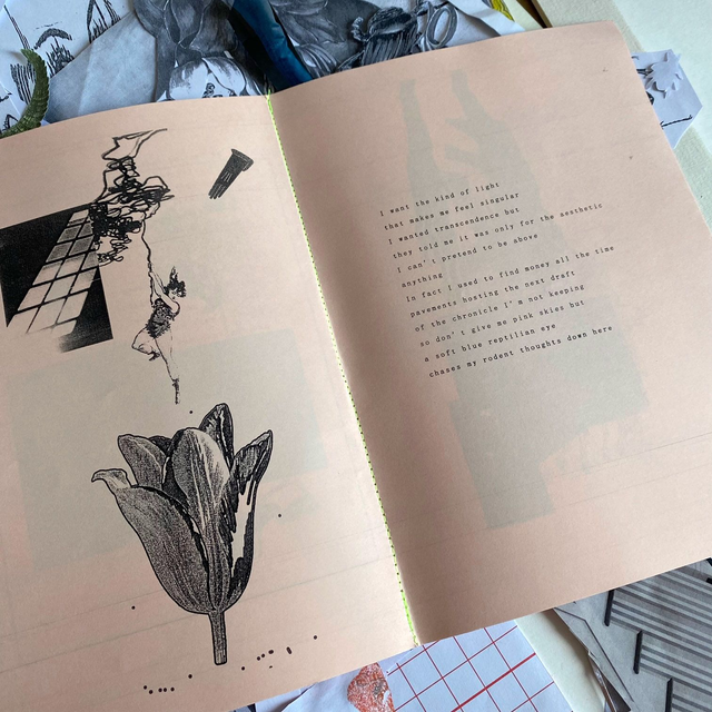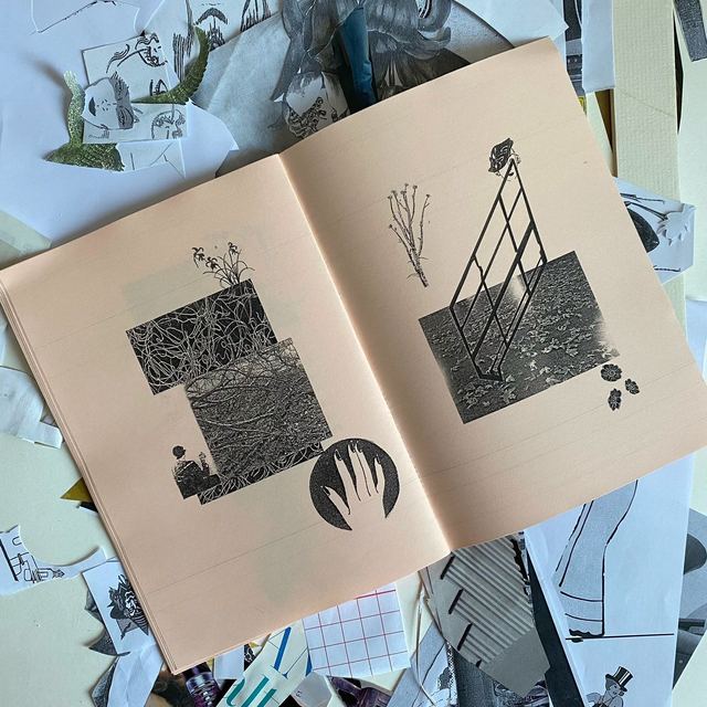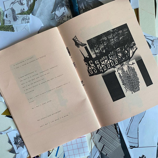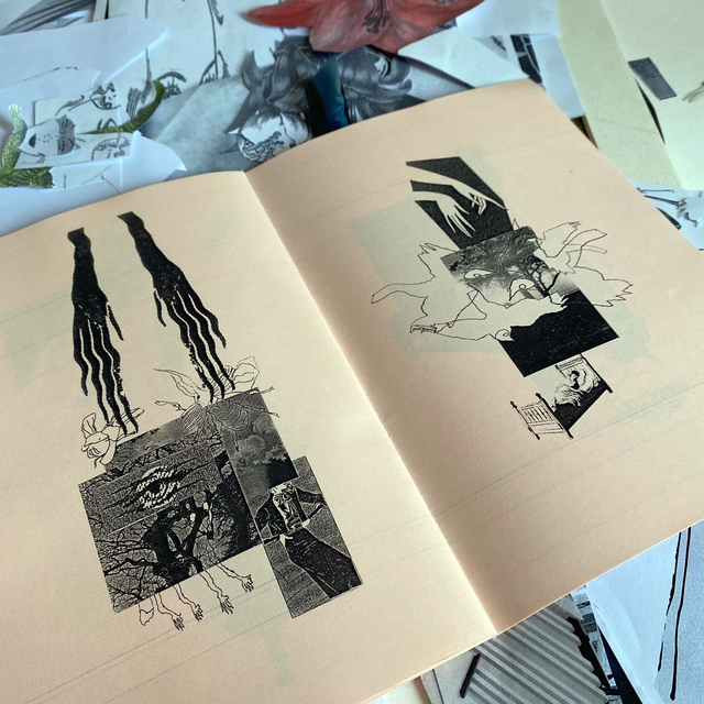 Hand assembled 36 page zine by Corvid Eyes, featuring works from her series 'Omens', accompanied by texts written by the artist.